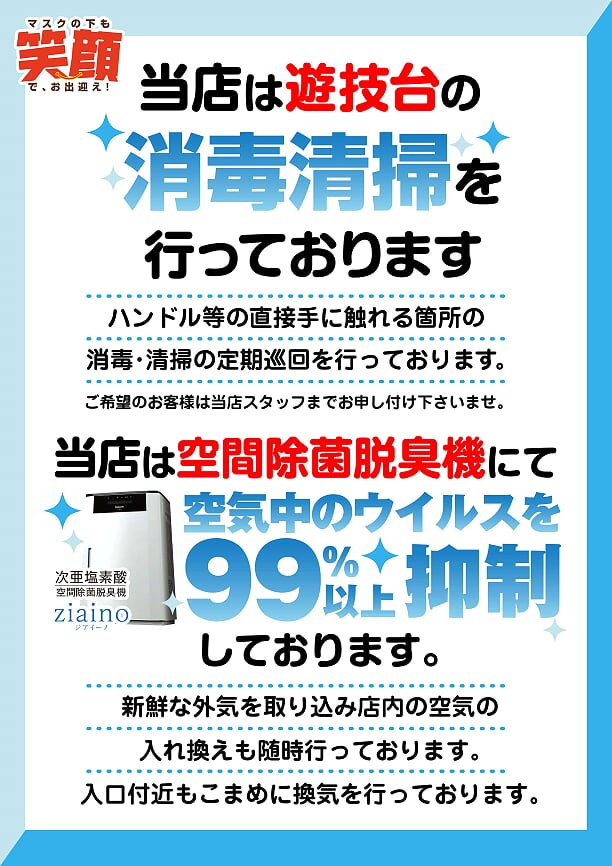 当店では、地域の皆様のご期待に添えるホール、ご満足頂けるホールを目指し努力して参ります。