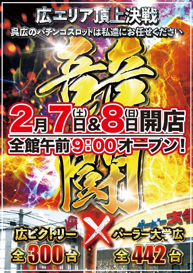 本日、頂上決戦競闘!週末到来全館9時オープン!!