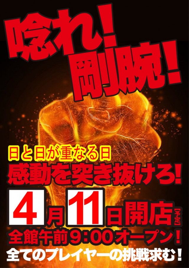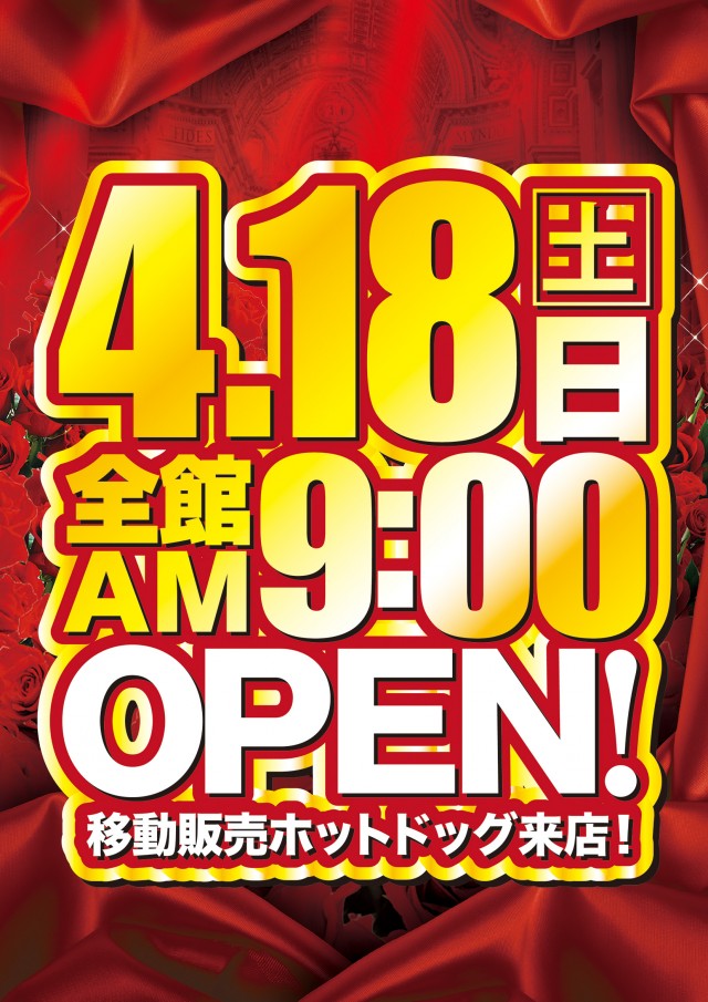 日と日が重なる日!唸れ!剛腕!全館9時オープン!!