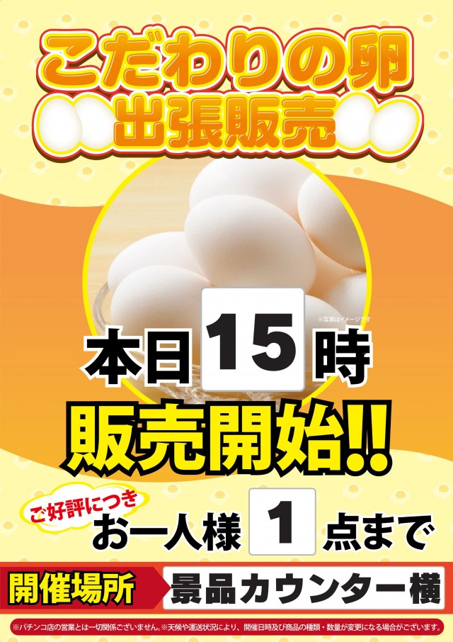 本日15時よりこだわりの卵出張販売開催します🌞