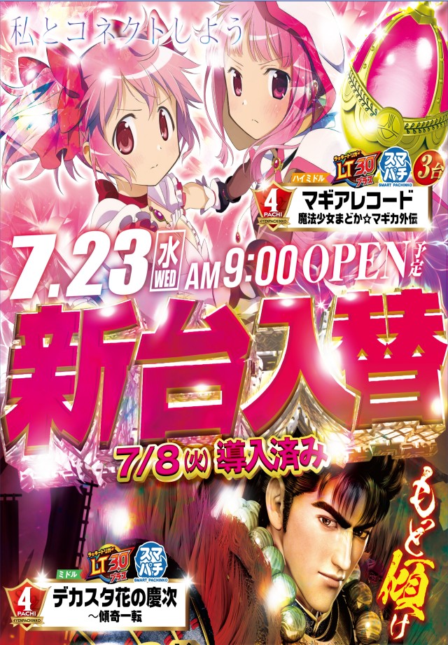 本日9時より新台eマギアレコード、デカスタe花の慶次開店🎉