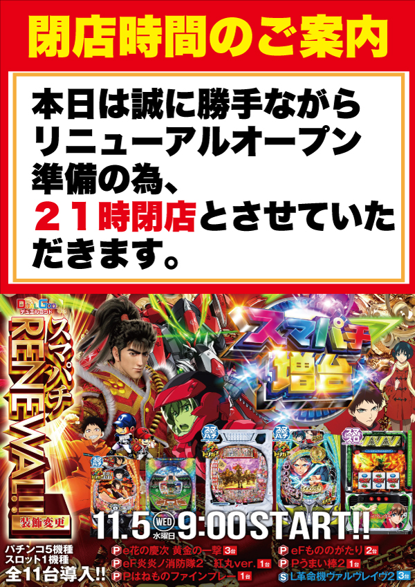 10/7(火)・14(火)・21(火)※10/28(火)は休まず営業!! |