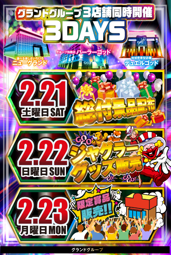 2/3(火)、2/17(火)※2/10(火)、2/24(火)は休まず営業!! |