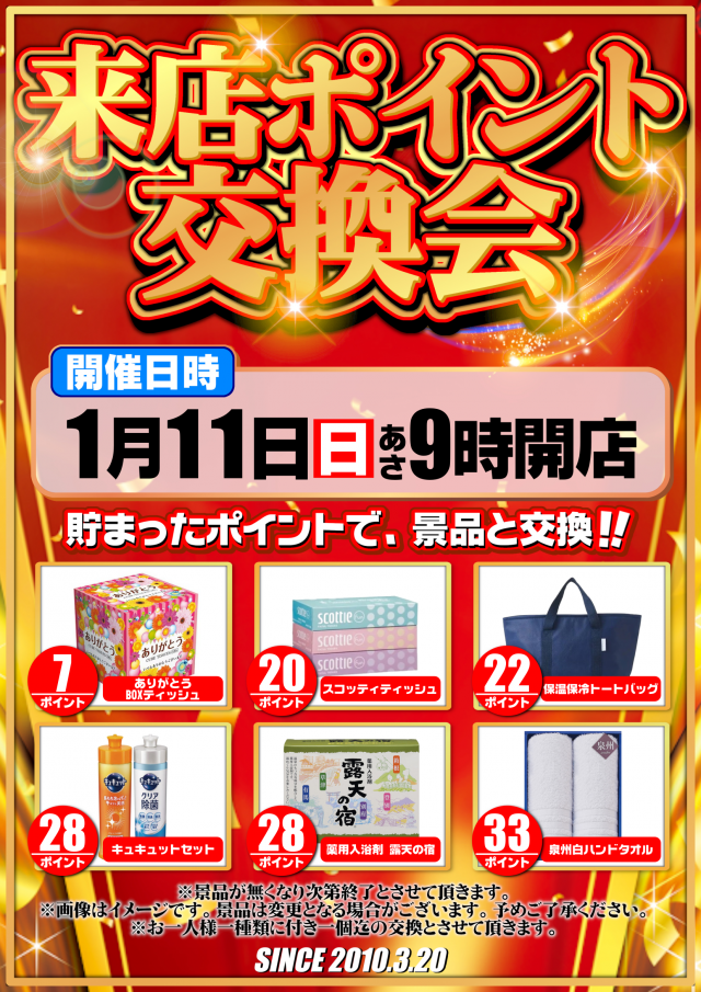 本日1月11日朝9時オープン‼本日来店ポイント交換会開催‼