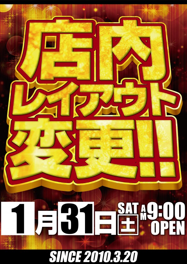 本日1月31日朝9時オープン‼レイアウト変更実施‼