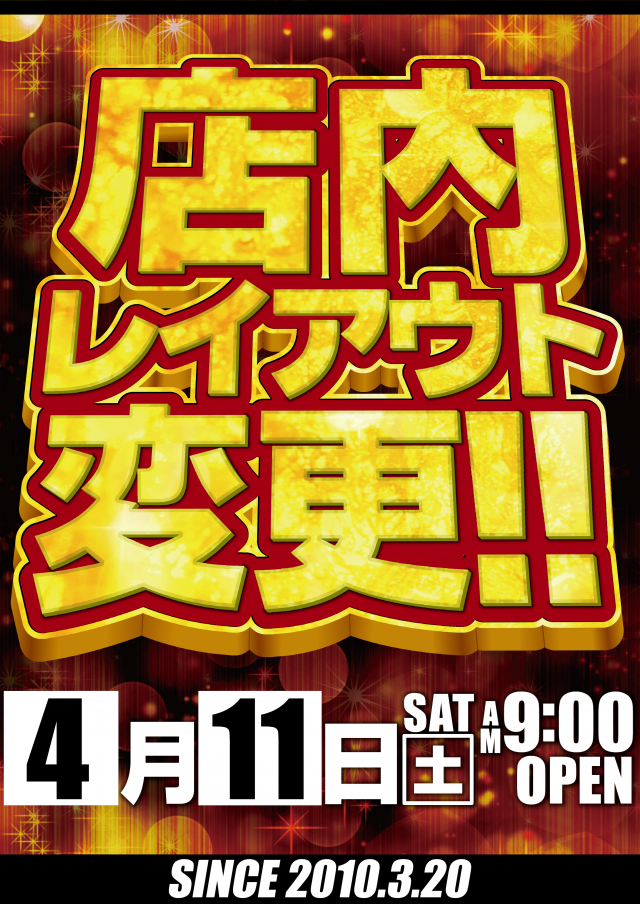 本日4月11日朝9時オープン‼レイアウト変更実施‼