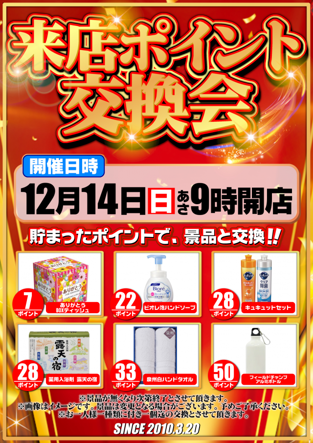 本日12月14日朝9時オープン‼来店ポイント交換会実施‼
