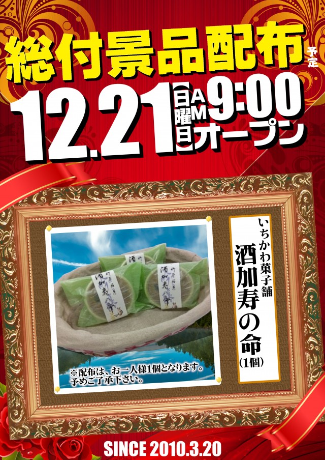 本日12月21日朝9時オープン‼本日総付景品配布‼