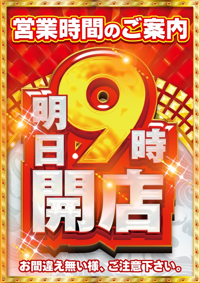 明日12月13日土曜日 全館一斉 9:00開店予定!