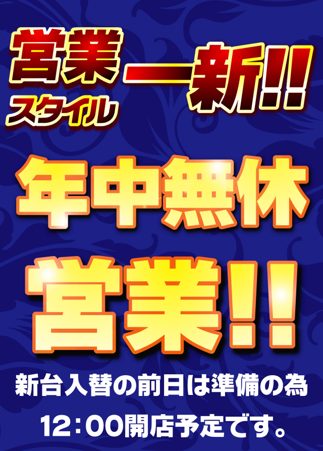 新台入替前日は12時開店とさせていただく場合がございます。 |