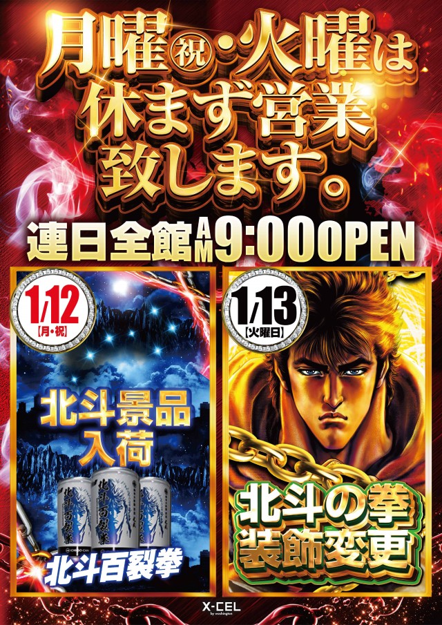 明日1月13日(火)北斗装飾変更!全館9時OPEN!