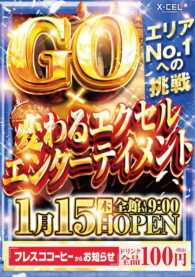 本日1月15日(木)GO×エクセル!全館9時OPEN!