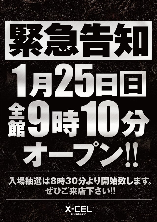 本日1月25日(日)GO×エクセル!9時10分OPEN!