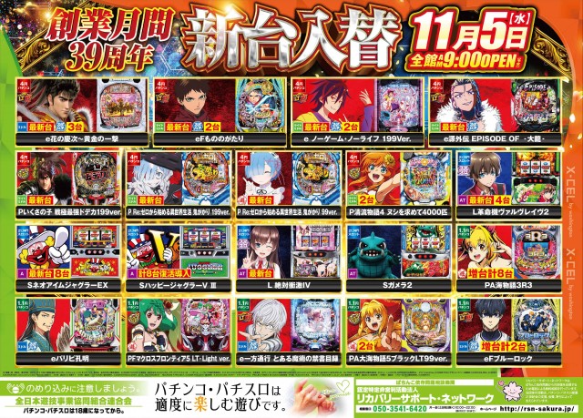 本日11月5日 GO×エクセル&新台入替初日!