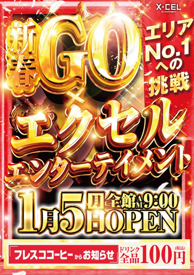 本日1月5日(月)新春GO×エクセル!全館9時OPEN!