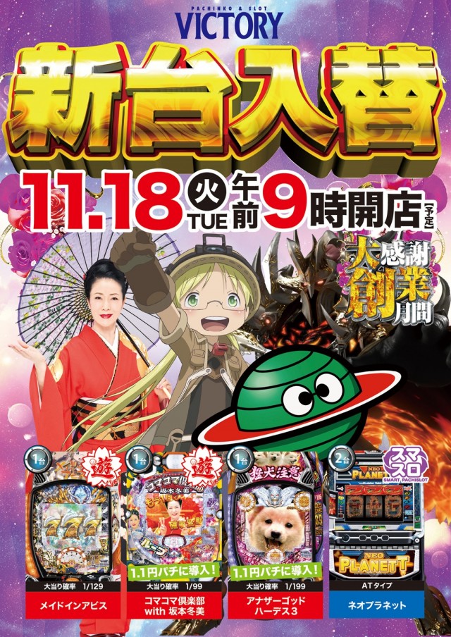 【超重要】ビクトリー三原11月20日全館9時開店!