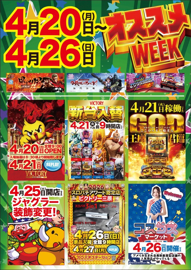 【超重要】ビクトリー三原4月20日(月)全館9時開店!