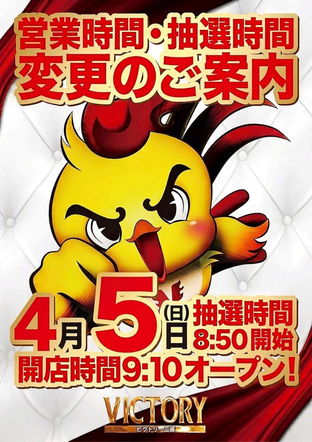 【超重要】ビクトリー三原4月5日(日)全館9時開店!