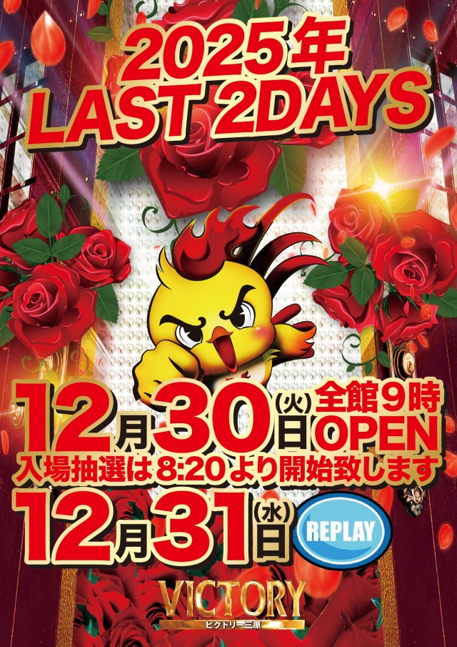 【超重要】12月30日ビクトリー三原全館9時開店‼