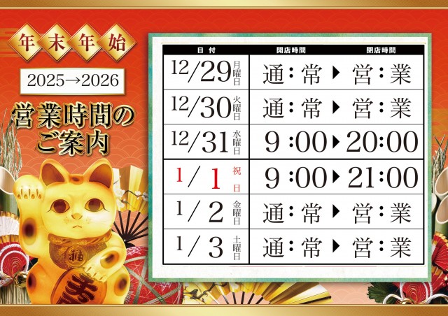 【重要】年末年始は休まず営業致します。