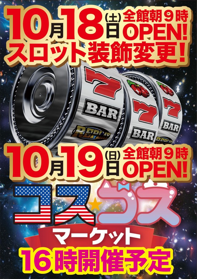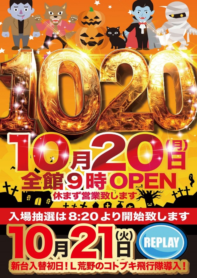 【超重要】ビクトリー三原10月20日全館9時開店!