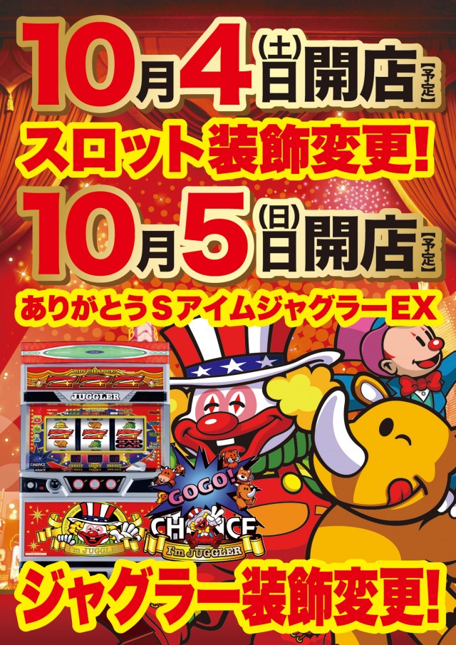 2025/10/05【重要】ありがとうSアイム&ジャグラー装飾変更!おはようございます!! ビクトリー三原です!! ありがとう! Sアイムジャグラー‼    入場抽選は この後8時30分より開始致します♪♪ 皆様のご来店心より お待ちしております。