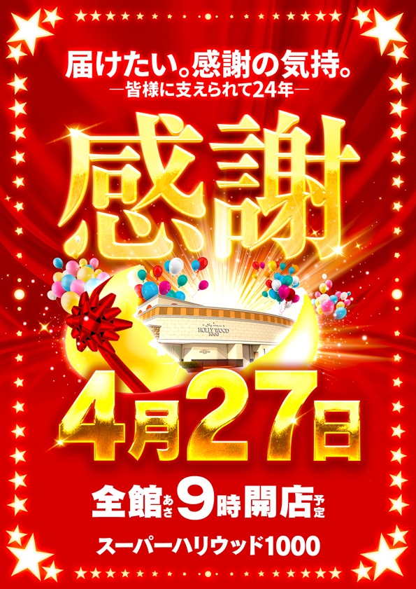 新台打つならハリウッドへ!!4月で24周年を迎えます✨✨