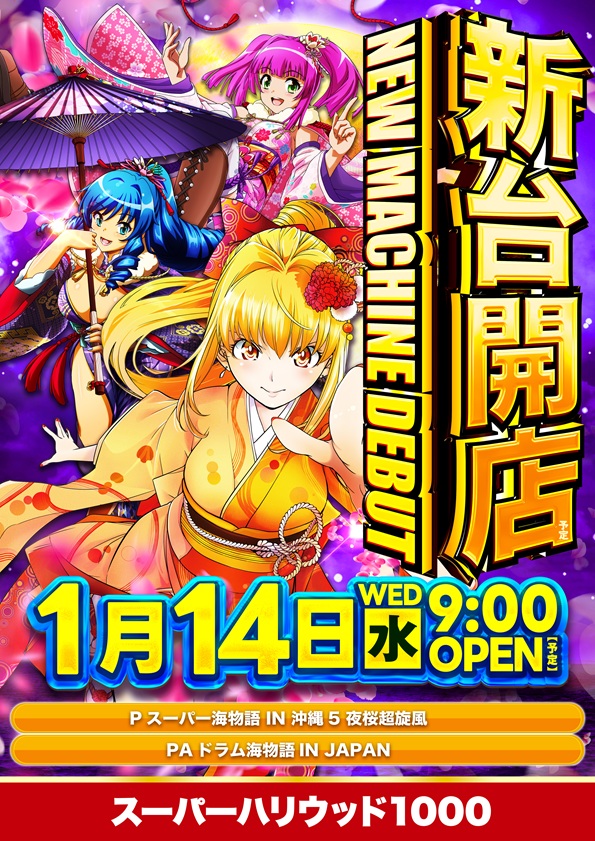 本日1月14日(水)新台開店!!全館9時開店!!