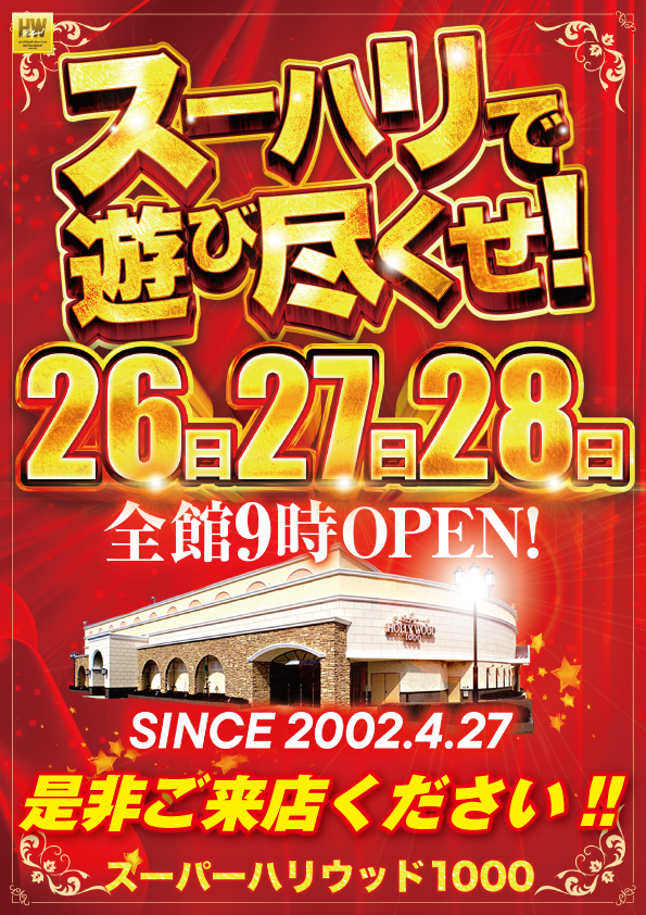 9月20日(土)全館9時開店!週末もハリウッド!!