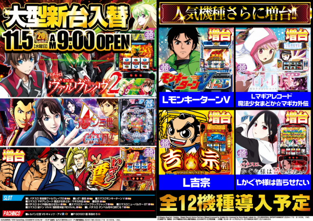 本日11月5日(水)【新台入替】(予定)