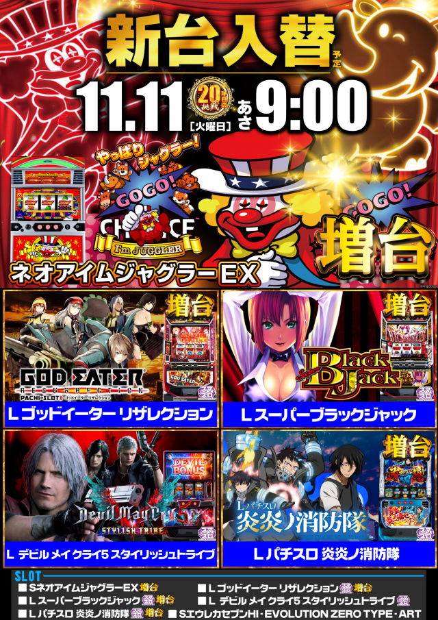 本日11月11日(火)【新台入替】(予定)