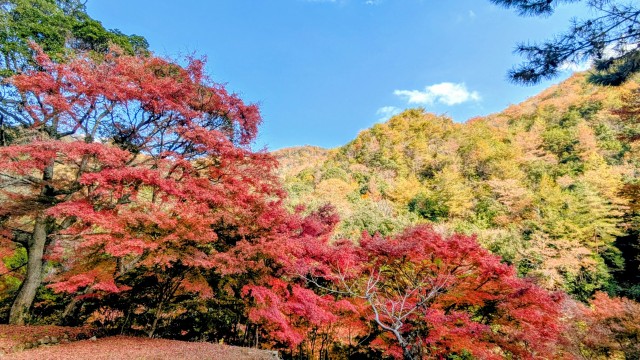 おかげでキレイな紅葉も見れました。高梁辺りかな?