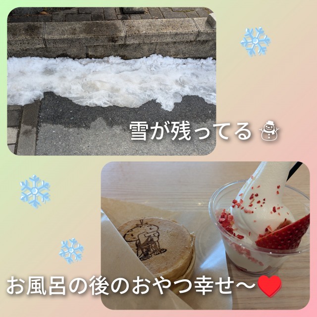 晴天の休日、屋根や畑に残ってる雪景色を見ながら神石高原温泉へ行ってきたよ〜