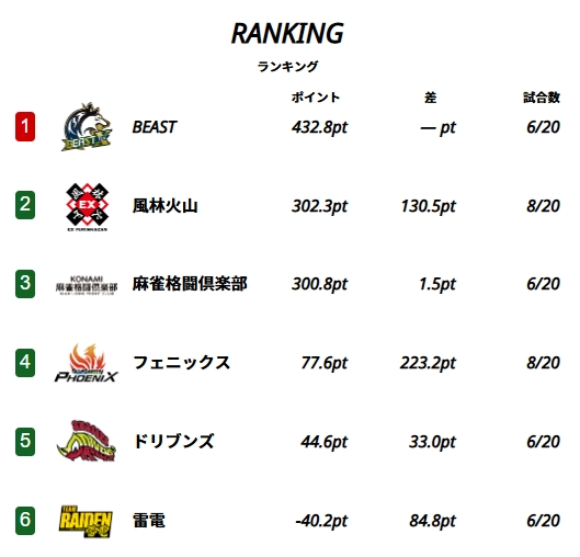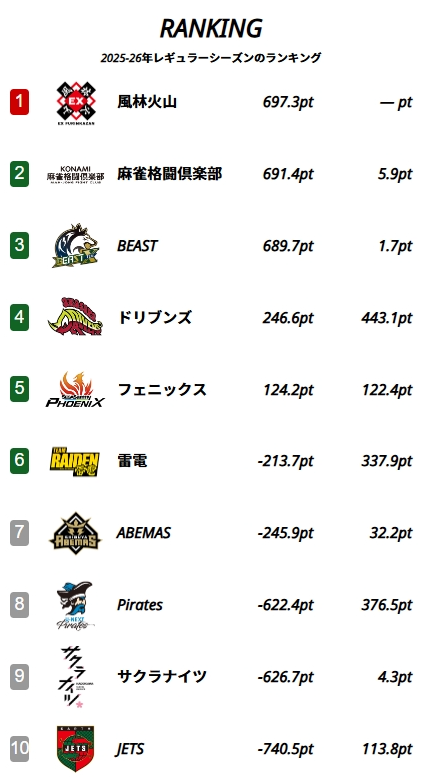 わが麻雀格闘倶楽部は惜しくも2位でレギュラーシーズンを終えましたが