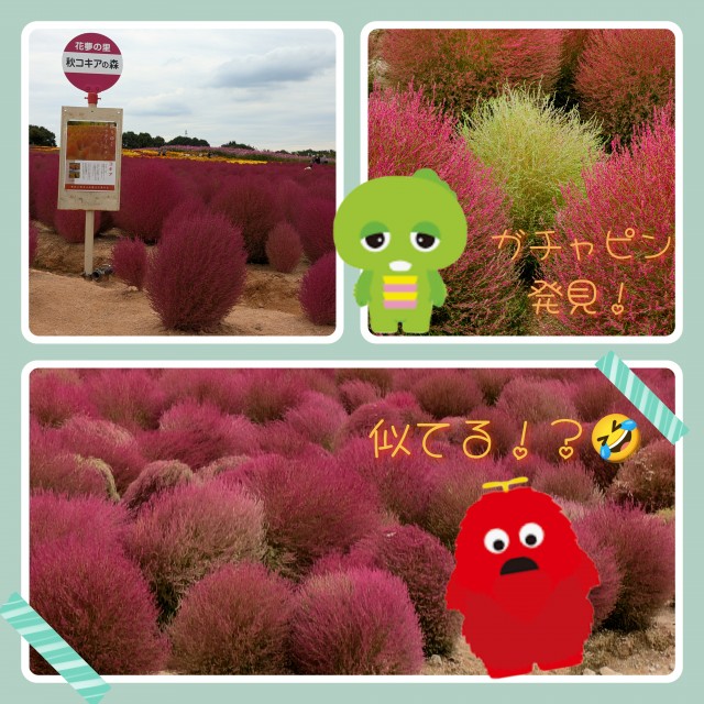 コスモスも可愛いんだけど、もふもふのコキアのフォルムが「あれ」に似てる!