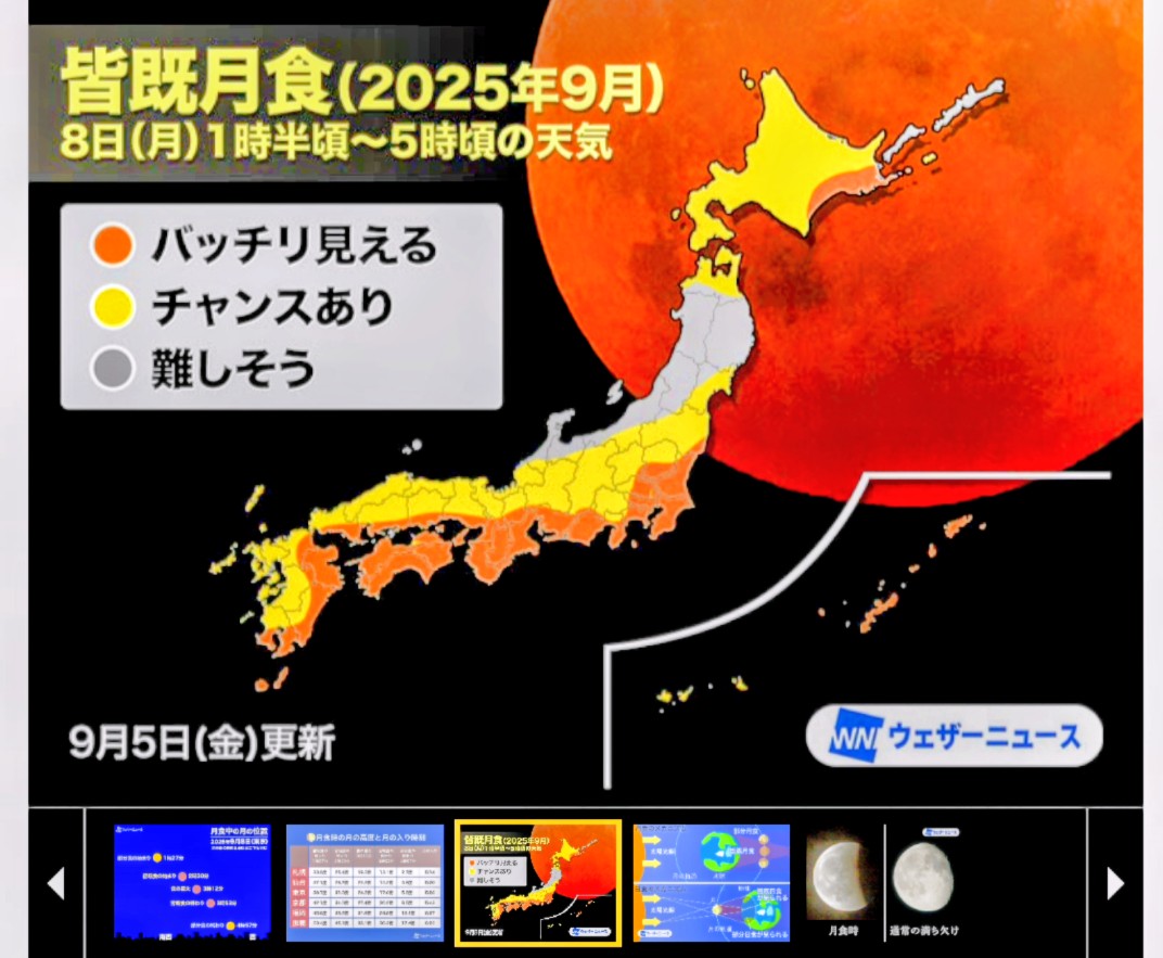 9月8日の深夜1時30分ごろから満月が地球の影に入って欠けていきます。