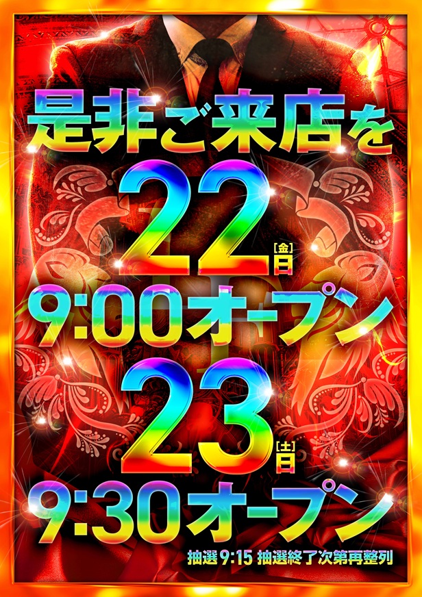 23日9時30分オープン広島県パチンコパチスロファン感謝デー