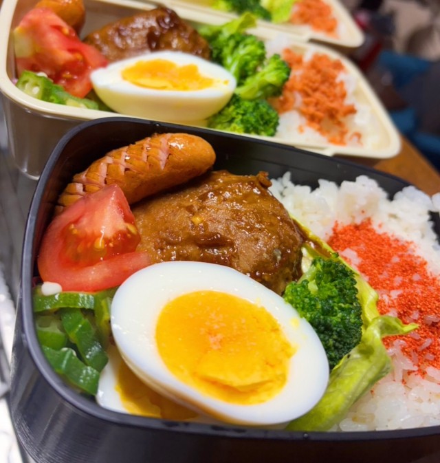 しょうがないので、私の温玉を半分わけてあげました(仏)