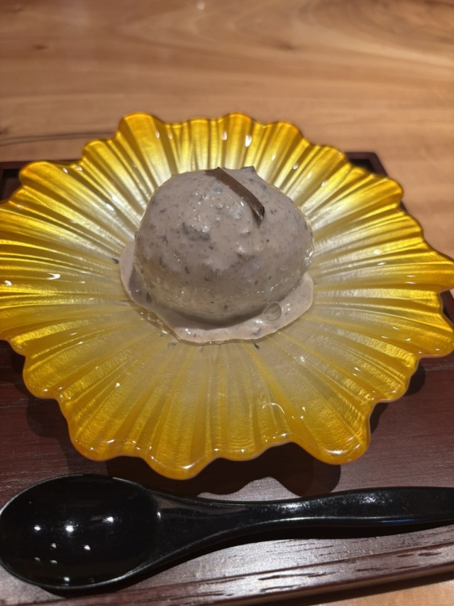 なんかお口直しに出てきたタマゴにトリュフのなんかがかかってるやつ。