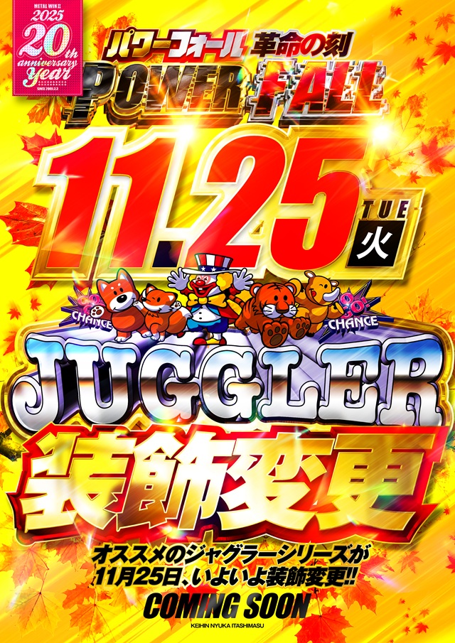 ◆明日の導入機種案内◆✨革命の刻 始まる❕❕✨✨エリア装飾変更完了✊✨✨ジャグラー団結✊✨