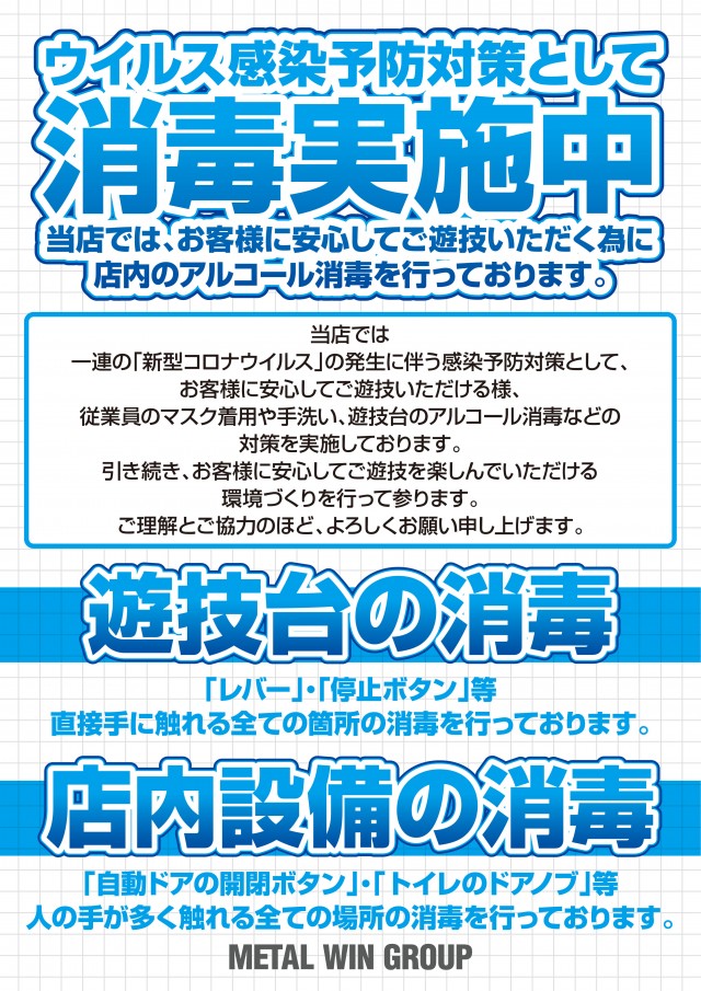 8時30分から抽選を開始します。整理券配布時の物品等での場所取り及び、入場後の台取り、掛け持ち遊技は確認次第、撤去させて頂きます。 |