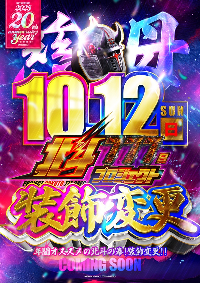 2025/10/12北斗装飾変更完了👽✨週末限定景品は山佐景品🐸✨朝9時OPENみなさま こんばんは❕メタルウィンⅡです✨雄たけびを共に上げろ✨  ✨ウィンⅡ北斗プロジェクト✨⚡北斗エリア装飾変更完了❕❕⚡ ✨ウィンⅡ北斗プロジェクト✨⚡北斗エリア装飾変更完了❕❕⚡  祝日の為延長❕❕✊今週の週末限定景品は…✊ 祝日の為延長❕❕✊今週の週末限定景品は…✊ ✨山佐✨✨パルサーマグカップ✨◆ 限 定 入 荷 ◆✨雄たけびを共に上げろ❕❕✨✨年間オススメ✊北斗の拳✨エリア装飾変更完了❕❕⚡南斗最後の将⚡ ✨山佐✨✨パルサーマグカップ✨◆ 限 定 入 荷 ◆✨雄たけびを共に上げろ❕❕✨✨年間オススメ✊北斗の拳✨エリア装飾変更完了❕❕⚡南斗最後の将⚡ ⚡地域最大級設置⚡✨モンキーターンⅤ✨ ⚡地域最大級設置⚡✨モンキーターンⅤ✨ ✨10月オススメ❕❕✨⚡東京喰種⚡⚡退かない、前に進む❕❕⚡ ✨10月オススメ❕❕✨⚡東京喰種⚡⚡退かない、前に進む❕❕⚡ ✨東京リベンジャーズ✨⚡ハロウィン決戦❕❕⚡ ✨東京リベンジャーズ✨⚡ハロウィン決戦❕❕⚡ ✨いつものアイツと遊ぼう❕❕✨✨ジャグラー団結✊✨ ✨いつものアイツと遊ぼう❕❕✨✨ジャグラー団結✊✨ ⚡拡大パワーアップ❕❕⚡✨NEW A-TYPE✨ ⚡拡大パワーアップ❕❕⚡✨NEW A-TYPE✨ ⑤ALL SMART SLOT⑤最新台が5スロで打てる✊ ⑤ALL SMART SLOT⑤最新台が5スロで打てる✊ 他にも話題の機種から✊人気機種まで✊⚡全268台⚡でお出迎え致します❕❕明日もスロットするなら楽しさ最大SLOT専門店メタルウィンⅡへ❕❕ 他にも話題の機種から✊人気機種まで✊⚡全268台⚡でお出迎え致します❕❕明日もスロットするなら楽しさ最大SLOT専門店メタルウィンⅡへ❕❕