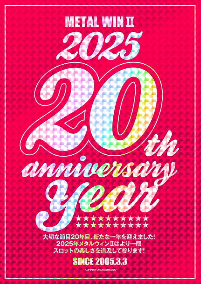 みなさま おはようございます。❕メタルウィンⅡです✨20th anniversary✨◆今回の導入機種案内◆⚡周年×新台⚡