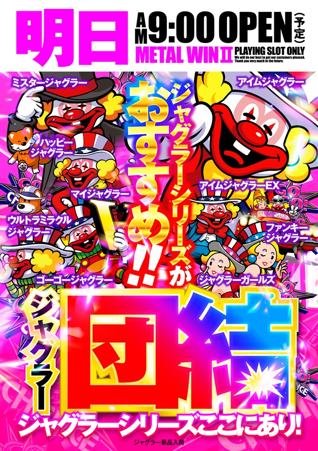 メタルウィンⅡ店舗外海側正面口にて入場整理抽選を予定しておりますので入場整理抽選を希望のお客様は奮ってご参加くださいませ❕❕