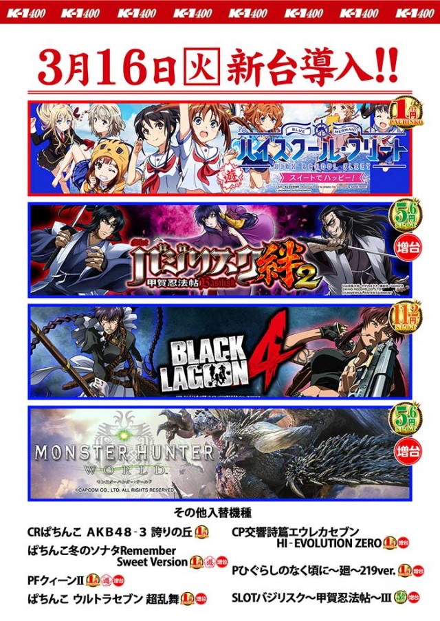 甲賀忍法帖、バジリスクⅢ、モンハンワールド増台