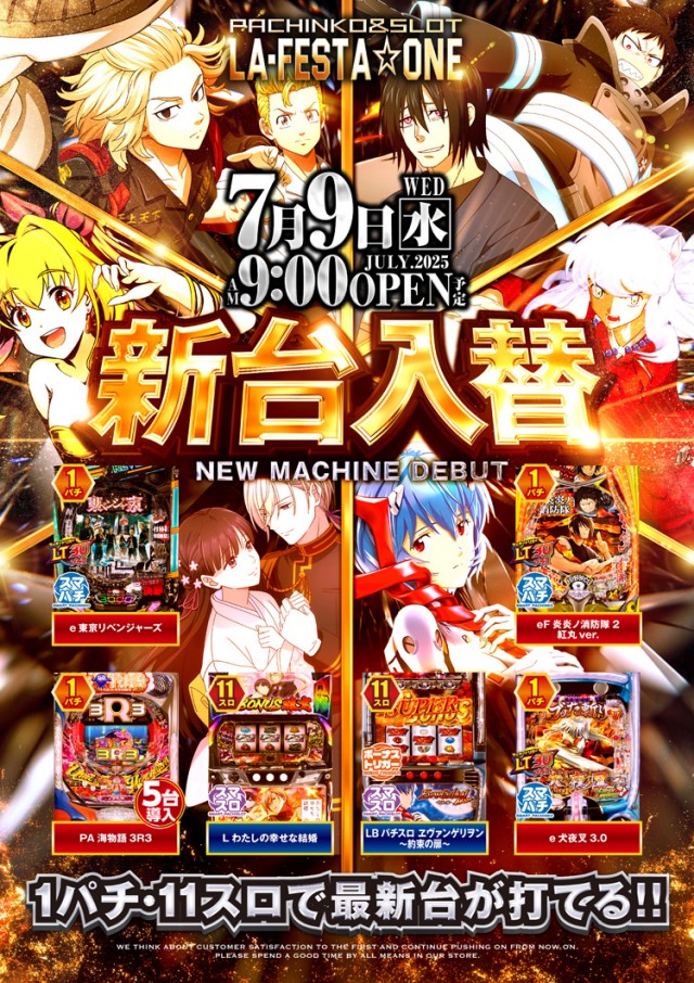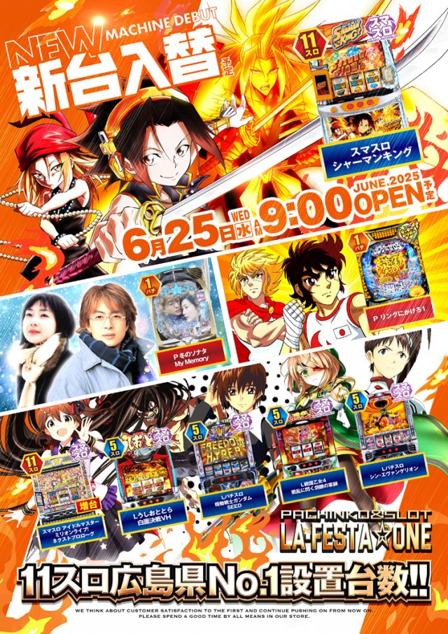 LA・FESTA☆ONE 明日も全機種全台朝9時オープン❗❗