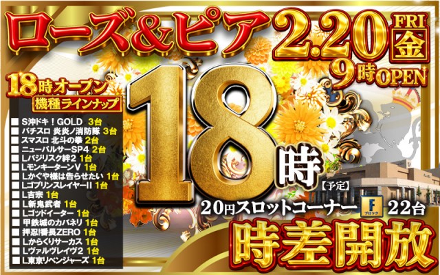 2月20日(金)20円スロット22台18時コーナーオープン!