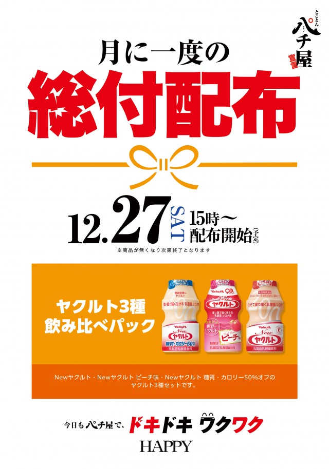 【本日27日】★総付け配布★遊技中のお客様へ♬