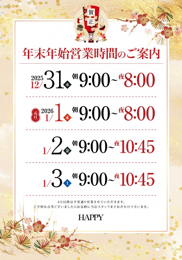 明日大晦日!! 打ち納めも是非大門ハピーへお越し下さい。
