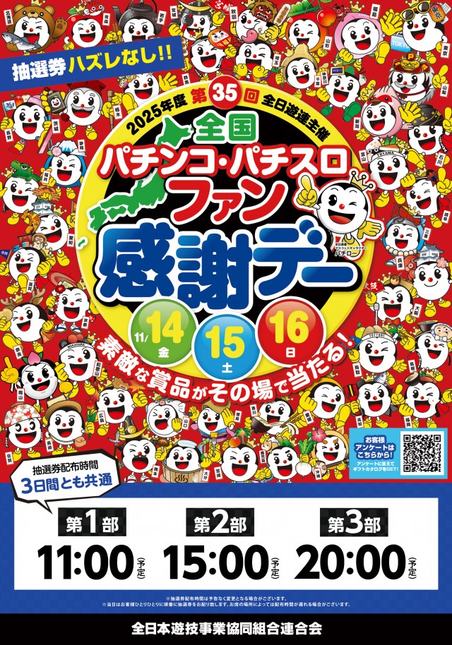 本日11月14日より3日間★全国パチンコファン感謝デー★